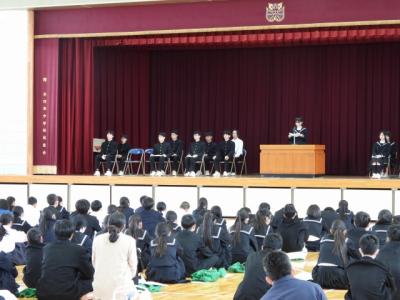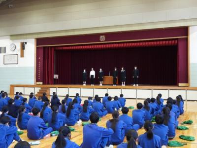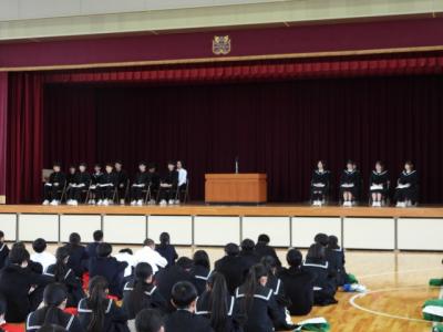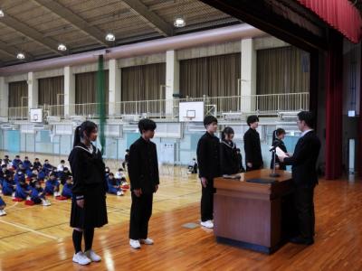 3月12日(木)午後、全校集会で令和8年度前期生徒会役員認証式を行いました。