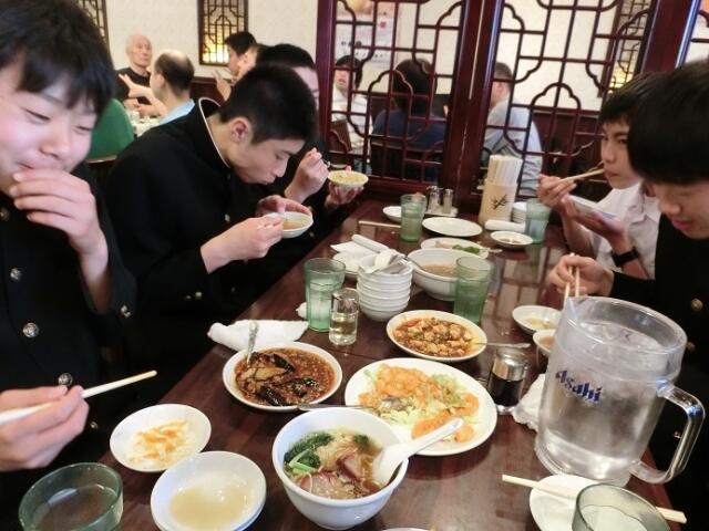 学級毎のコースで見学しました。A組はサンシャイン水族館と横浜中華街(昼食)へ。B組はYOKOHAMA Orbiと横浜中華街(昼食)、カップヌードルミュージアムへ行きました。中華街での昼食は中華バイキングでした。餃子、チャーハン、エビチリ・・・続々と中華料理がテーブルを埋め尽くしますが、それらを食べ終えどんどん追加注文をする姿に、たくましさを感じました。