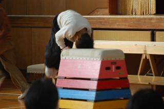 跳び箱は、飛び越すだけでなく、台上前転も!