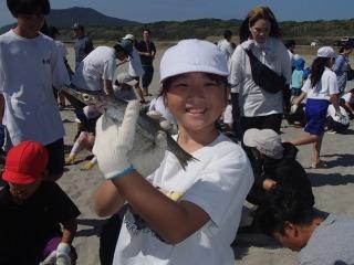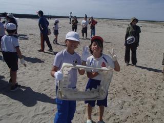 赤中の先輩たちが小学生たちの世話をしながら、たくさんのゴミが集まりました。