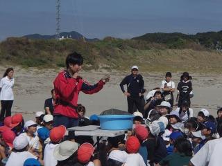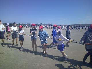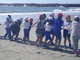 10月7日に赤羽中校区の5校とあかばねこども園が集まって、地引き網が行われました。本校からは、4年生が参加しました。