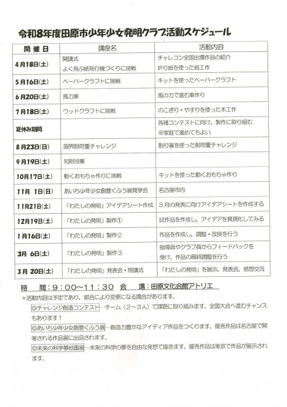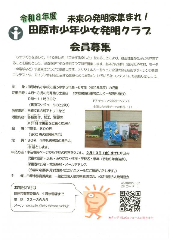 | タイトル | R8 【訂正版】田原市少年少女発明クラブ会員募集 2/13〆切 |