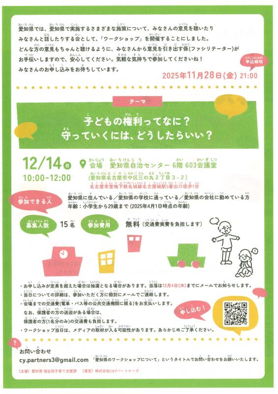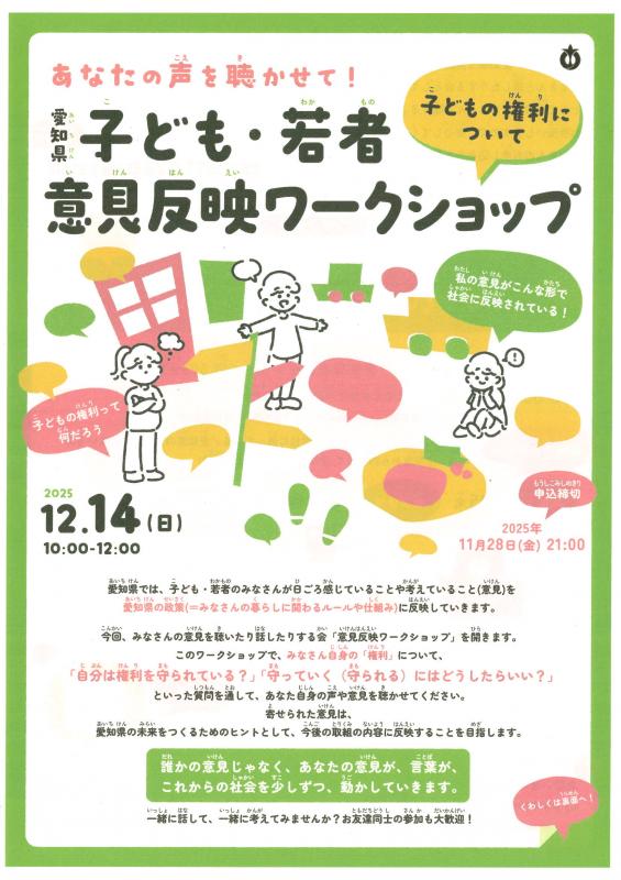 | タイトル | 12/14 子ども・若者意見反映ワークショップ 申込〆11/28 |