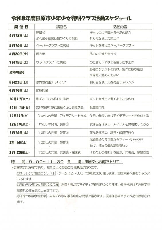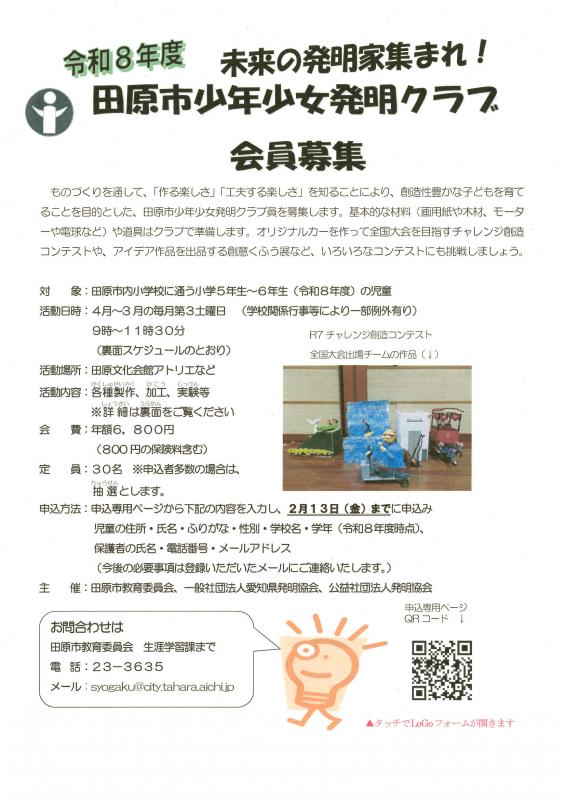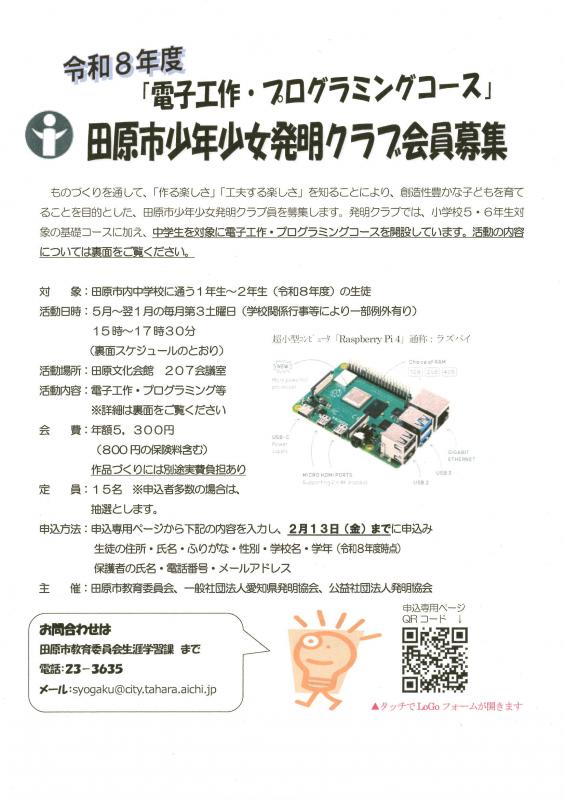 | タイトル | R8 田原市少年少女発明クラブ会員募集 2/13〆切 |
