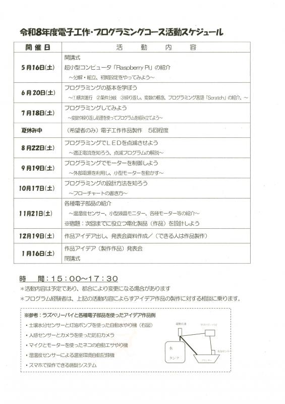 | タイトル | R8 電子工作・プログラミングコース「田原市少年少女発明クラブ会員募集」2/13〆切 |