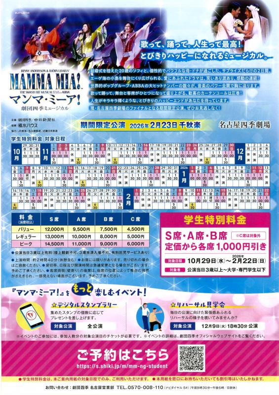 | タイトル | 〜2月公演 劇団四季 マンマ・ミーア |