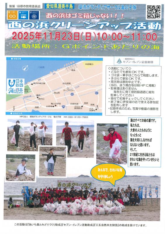 | タイトル | 11.23 西の浜クリーンアップ活動 |