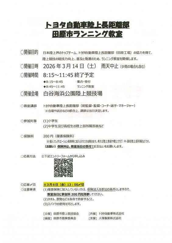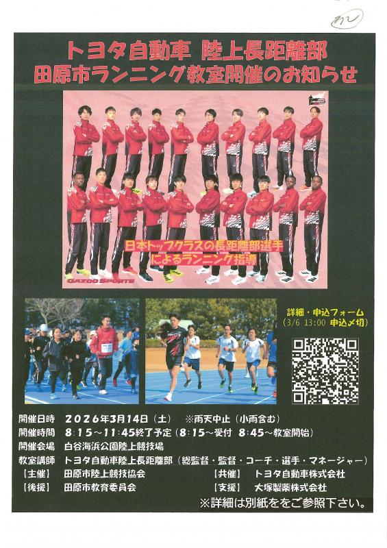 | タイトル | 3/14 トヨタ自動車ランニング教室 |