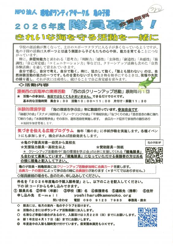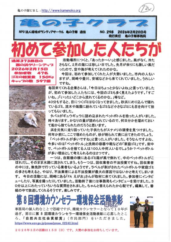 | タイトル | 3/15 西の浜クリーンアップ活動 |