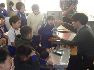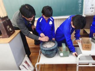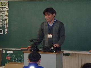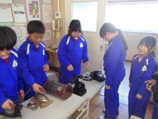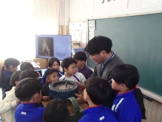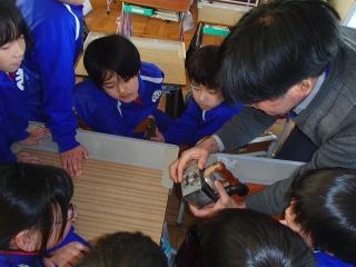 3年生の社会科「昔のくらし」で、「道具を実際に見たい!」というわけで、田原市博物館から、一部の道具を持ってきて見せていただきました。