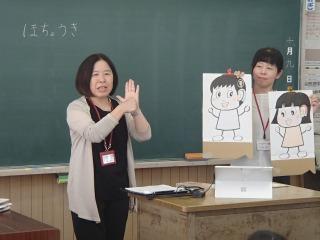 6年生は、聴覚が不自由な方とどのようにコミュニケーションしたらよいか勉強しました。