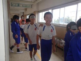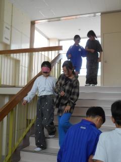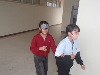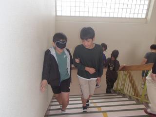 その後、アイマスクをつけて、交代で廊下を案内しました。
