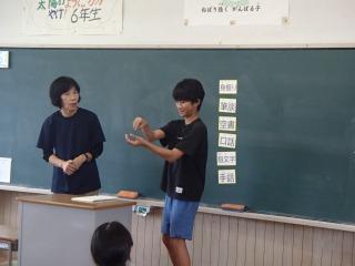 6年生は、1学期に手話を一生懸命に覚えた子が多く、教えてくださった先生方も、「すごい!覚えてるね!」とびっくりしていました。