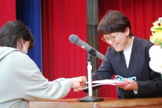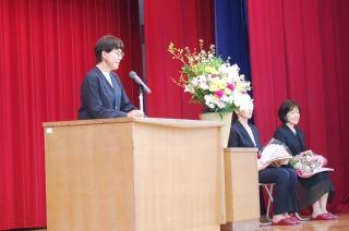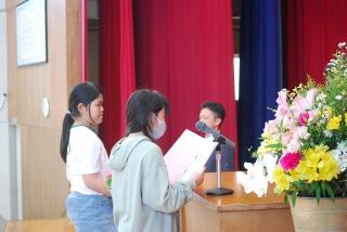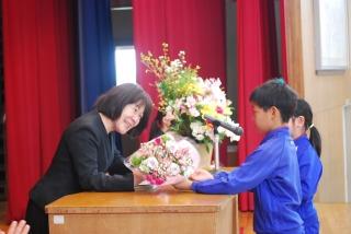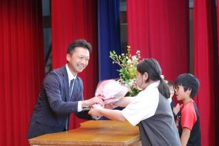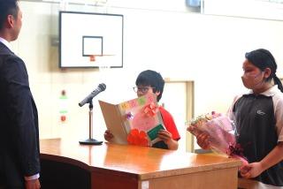 お一人ずつ、作文(代表)と花束の贈呈がありました。