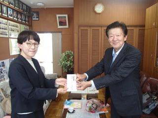その頃、校長室では、同窓会長さんから、お祝いの贈呈がありました。