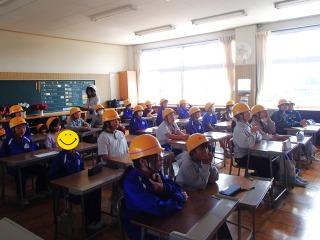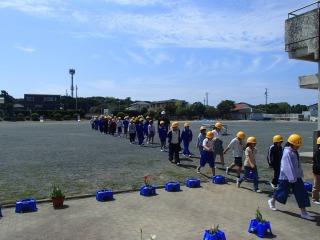 バタバタしてて、カメラを持っていなかったので、運動場へ避難して、お話を聞いてから、津波の避難をするところです。