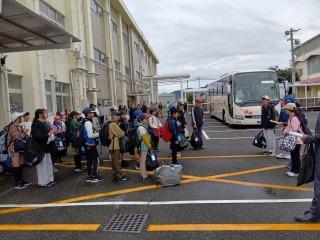 保護者の皆さんの心配をよそに、バスに乗り込みました。
