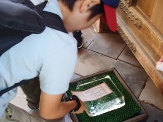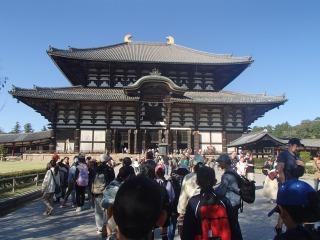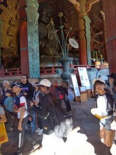 ガイド「大仏様の手の形は・・・。このお釈迦様にお参りすると、頭がよくなります。」