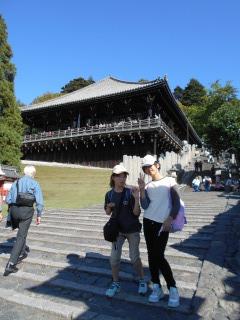 奈良公園内、どこに行っても鹿、鹿、鹿。大はしゃぎ。
