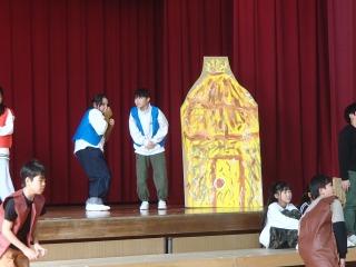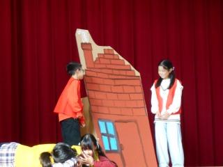 お話は、皆さんご存じの「3びきのこぶた」なので、英語を知らない下学年でも、なんとなくわかります。
