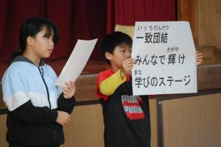 「一致団結 みんなで輝け 学びのステージ」です。