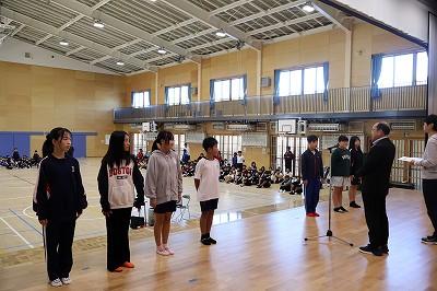 今朝は音楽集会がありました。今まで2つの学年が一緒に歌を発表する音楽集会でしたが、今回からは全校で一緒に歌うことになりました。今回は、校歌と10月の歌「ラララミュージック」を歌いました。子どもたちは、気持ちよさそうに元気よく歌っていました。続けて、夏休みの作文や校外活動に関わる表彰も行われました。