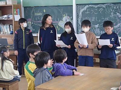 来年度小学校に入学する51名の年長園児のために、5年生が体験入学を行い、読み聞かせや校内案内を行いました。新1年生の子も笑顔でこたえ、入学への期待が高まったようです。
