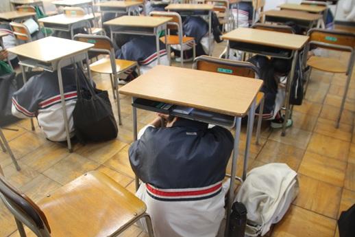 1月8日(木)は避難訓練がありました。福江中では、今年度、想定外のことが起きたときの避難訓練をしています。地震で怪我をしてしまった生徒がいる、パニックになってしまった生徒がいるなど、先生にも友達にも何が起きるか知らされていない避難訓練です。