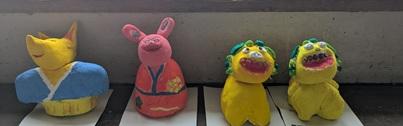 ドリームの会のみなさんが、土人形の色塗りをしました。これは、免々田川の桜まつりのときに、街の彩りに使われるものです。