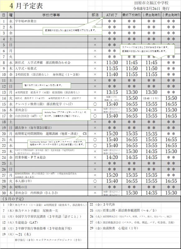 4月の予定をお知らせします(3月26日)