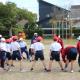 縦割り班ごとに集合し、準備体操を行います。その後、各学年ごとの出発位置からスタートし、縦割り班ごとの目標に向かって、5分間走っています。ランRUNタイムが終わった後も、自主的に走っている子どもたちもいます。