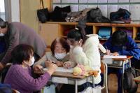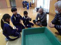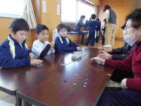 市民館では、はつらつ隊の方がみえて、「こま」「お手玉」「あやとり」「けん玉」「おはじき」のやり方を教わり、一緒に遊びました。