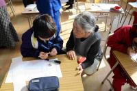 俳句教室には、渥美俳句会の方が9名来てくださり、子どもたちに俳句の基礎基本「5・7・5で書く」「自分らしさのあるもの」「季語を1つ入れる」などについて教えてくださいました。また、写真を見ながら、気がついたことを言葉にし、季語について考えました。