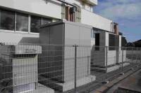 冷暖房機は、ガスで運転するもので、体育館の東に3つ、西に3つ設置されました。緊急時に対応できる発電機も備わっています。