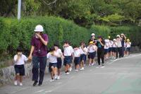 校長先生からは、キーワード「おさない かけない しゃべらない もどらない」の話がありました。最近では、「ちかづかない」や「ていがくねん ゆうせん」の言葉が加わったそうです。