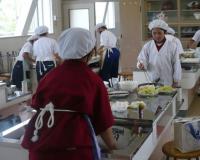 6年生が家庭科の授業で、自分で考えた3種類の野菜を使ってオリジナルの野菜炒めを作りました。