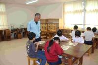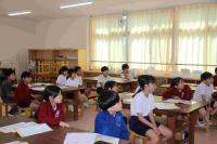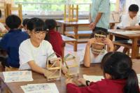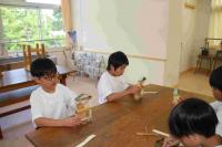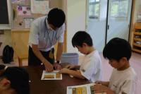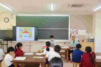 はじめに、地震が起きるメカニズムや被害について映像を交えて話を聞きました。次に紙で家の模型を作り、筋交いの特徴について学びました。子どもたちは、筋交いを入れることで、揺れに強くなることを実感し、たいへん驚いていました。また、「地震が起きたときに、家具の下敷きにならないために、家具の位置を考えようと思いました。」「筋交いをつけた方が家が壊れないことがすごいなと思いました。」「学校の帰りに地震が起こったら、石の壁からはなれようと思いました。」など自分の身を守る方法を考えることができました。