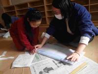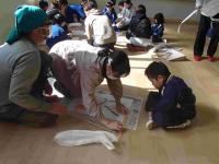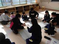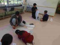 講師の方をお招きして、親子凧作りを行いました。子どもたちが名前やイラストを描いてデザインしたものに竹ひごやたこ糸を付け、親子で協力して完成させました。