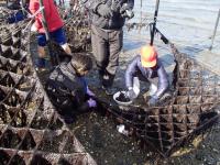 16日(火)には、前日収穫した海苔を使って、板海苔づくりを行いました。なれない海苔すきは、何度か繰り返すうちに手際よくできるようになりました。少し、寒い日でしたが、熱心に取り組むことができました。できた板海苔は、家に持ち帰り、おいしくいたく予定です。