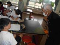 子どもたちは、話を聞いて「アサリが前より採れなくなっていることがわかりました。」「福江の海は、栄養豊富なことがわかりました。」「福江の海には、キス、ブリ、アジ、イワシなどたくさんの種類がいることがわかりました。」「漁師さんたちは、気候が急に変わっても、毎日毎日たいへんでも仕事をしていて、すごいと思いました。」などの感想をもち、福江の海への関心を高めることができました。