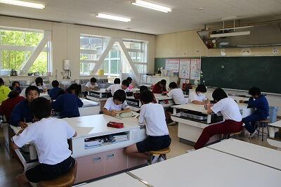 昨日までに、5・6年生は他の教室への一時引っ越しを終え、今日から5・6年生教室の周辺の工事が始まりました。自分たちの教室から離れての学校生活になりましたが、5・6年生はいつものように集中して授業等に取り組んでいます。