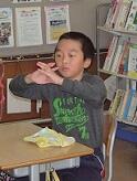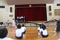 朝会「豆つかみ大会」・ストップ温暖化教室(6年)