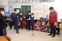 生活科で勉強した昔の遊びを、年長さんに教えてあげながら一緒に遊びました。