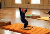 まずは、ジャンプして跳び箱に飛び乗ります。