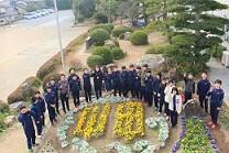 花壇のデザインは、教務主任です。花が咲きだし、文字が浮かび上がってきましたね。
