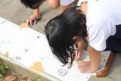 先週に引き続き、3年生が理科の時間に外で実験をしていました。