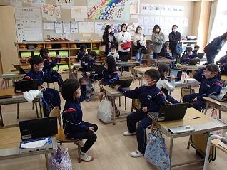 6年生と1,2,3年生が、仲良く鬼ごっこをしていました。もうすぐ卒業する6年生との楽しい思い出がまた一つ増えました。