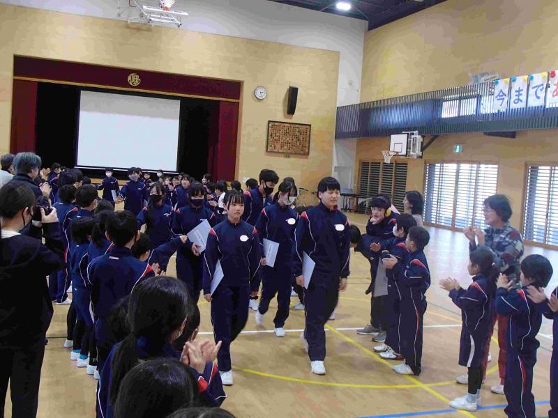 6年生を送る会 投稿日時 : 03/05 主担 3月4日(水)、6年生を送る会がありました。 5年生が会を取り回し、6年生クイズ、今までの担任の先生からのメッセージ、下級生や先生たちからの歌など、6年生への感謝の気持ちを伝える場となりました。