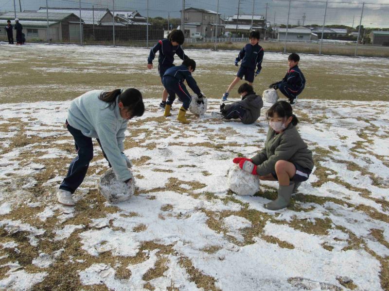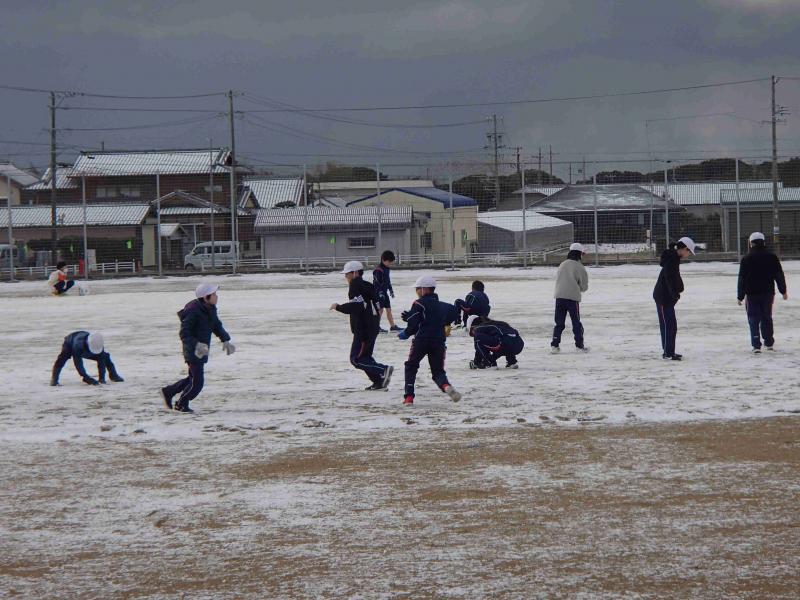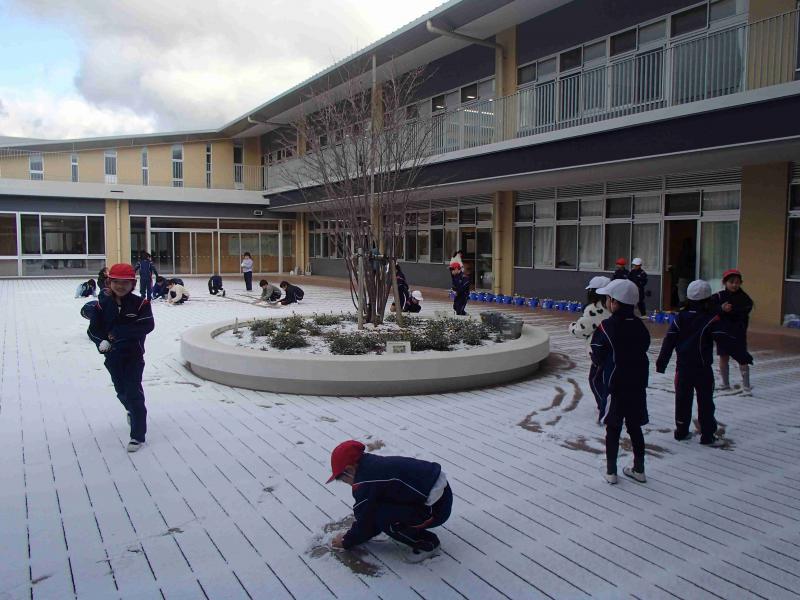 雪が積もりました 投稿日時 : 16:24 主担 1月22日(木)、大寒波の影響で朝、子どもたちが登校すると、校庭一面真っ白に雪が積もっていました。みんなの広場や運動場では、早速、雪だるまを作ったり雪玉を投げ合ったり、夢中になって雪遊びを楽しみました。