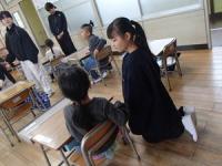 1年生が入学して6日目になります。4/9(木)以来、一週間程度を目途に、6年生児童が1年生の教室に行き、1年生の始業前の準備のお手伝いをしています。6年生がお手伝いする際は、できるだけやってあげることをせず、口頭でアドバイスしたり、教えたりして、1年生児童自身が自分で準備ができるよう配慮した支援を行っています。6年生のあたたかな行動に感謝です。